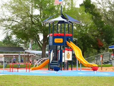 Do you enjoy watching good softball? If so, this is the place to stop and watch the softball games. From everyday working people to senior citizens, it is easy to enjoy yourself at this park. While you are there, take time to go for a walk on the ½ mile Paved V.F.W. Trail with security lighting and fitness stations, that circles the park. This trail was named as part of the 100th anniversary celebration of the founding, nationwide, of the Veterans of Foreign Wars. A 21.5 acre park located in Spring Hill. Includes multipurpose fields, baseball and softball field, playground, tot lot, concession stand, restrooms, press box, exercise trail, picnic tables and shelters. Please note: skates, skate boards and bicycles are NOT allowed on the walking trail.