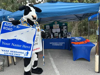 The Adopt-A-Road program allows citizens to show pride and maintain a clean, attractive community. Your business or community group can help keep roads litter-free by adopting an approved one-mile section of county-maintained roadway. Each group signs an agreement to clean up litter at least four times a year. The Department of Public Works provides safety training, two Adopt-A-Road signs, "litter crew on road" signs, safety vests and trash bags.